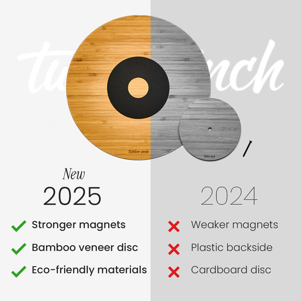 The magnets are now larger and stronger, the small disc is backed with cork for better grip, and the large thin disc is crafted from bamboo veneer — giving a more natural, durable, and eco-friendly feel.